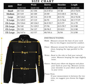 Fit is surprisingly good for a generic sized jacket. I’m a big guy and the spread across the shoulders is comfortable. The leather is stiff at first but breaks in nicely after a few days of work. Offers great protection against heat from the forge.